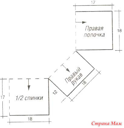 Со стороны спинки оставить для проймы в каждом ряду еще 1 раз три петли и 1 раз две петли.
